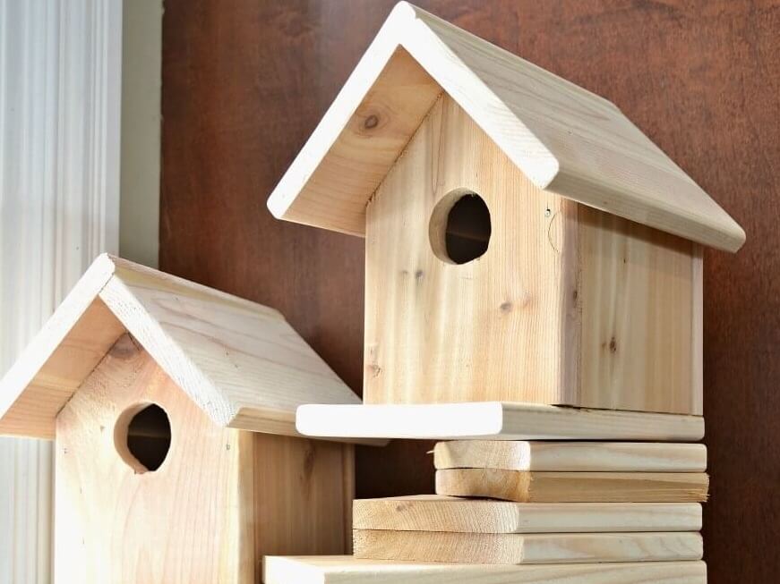We’ll assemble a simple wooden birdhouse together that you then get to take home.